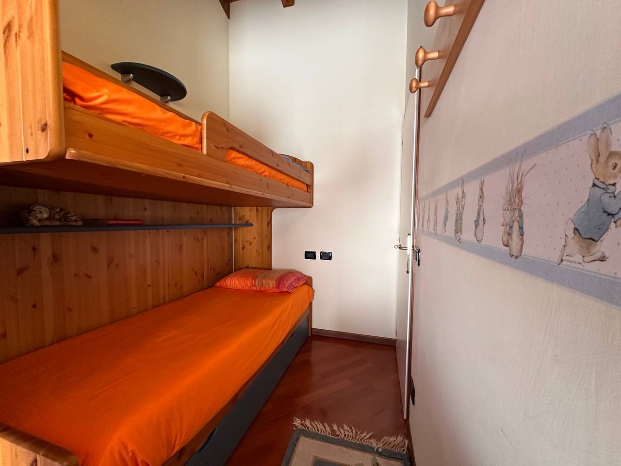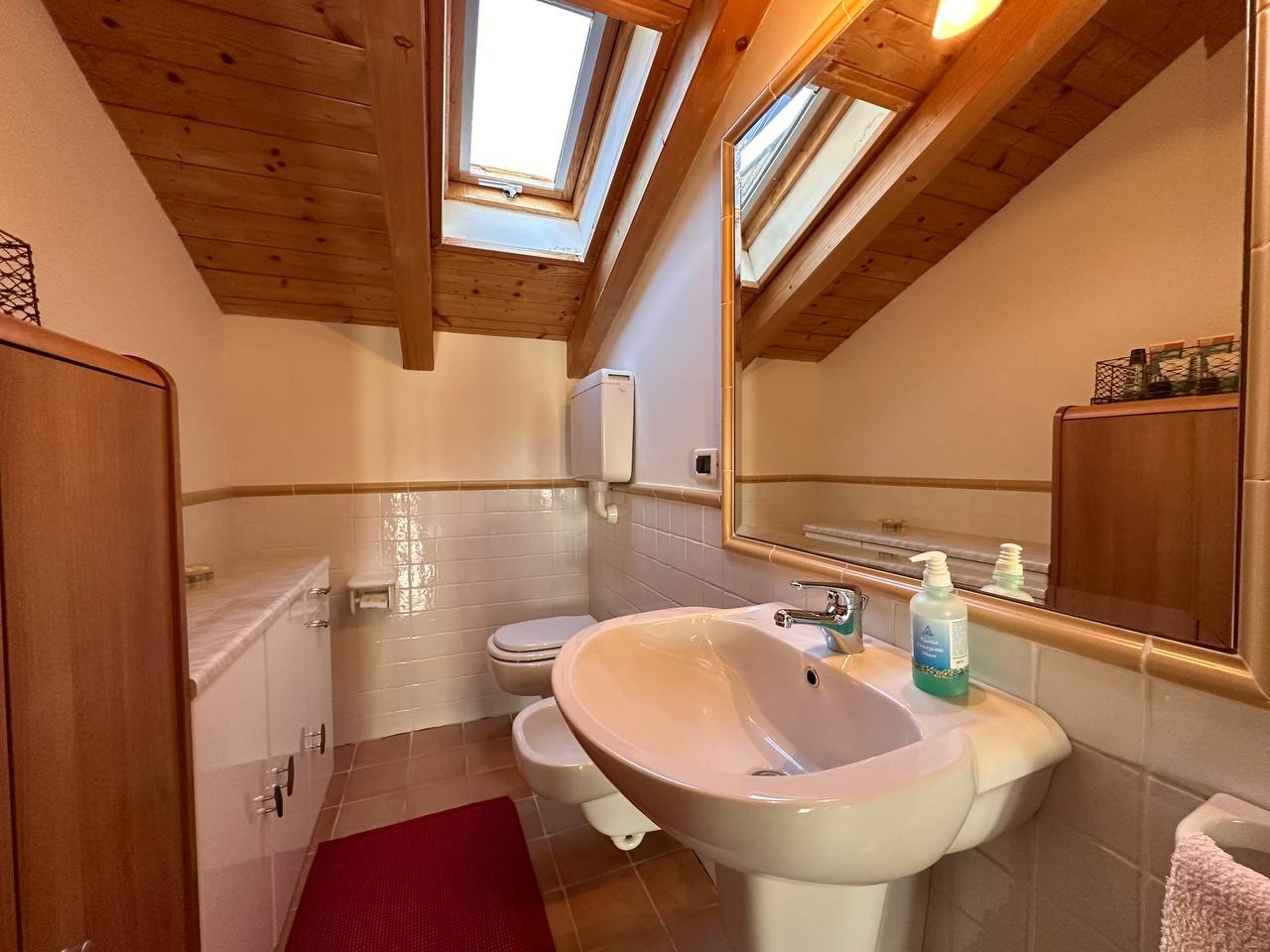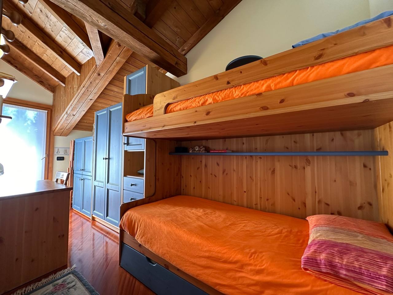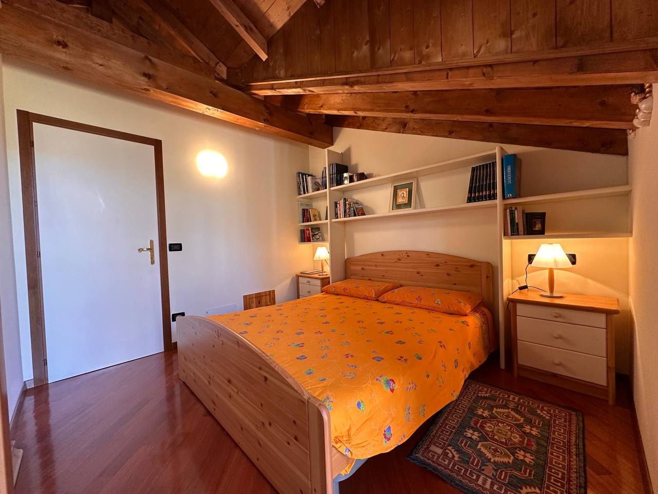 La zona notte è composta da una camera matrimoniale con terrazzino privato ed armadio a quattro ante, una seconda camera con letto a castello e ampia armadiatura, oltre a due bagni: un bagno principale finestrato con velux, dotato di box doccia, e un secondo bagno di servizio, utilizzabile anche come ripostiglio/lavanderia.