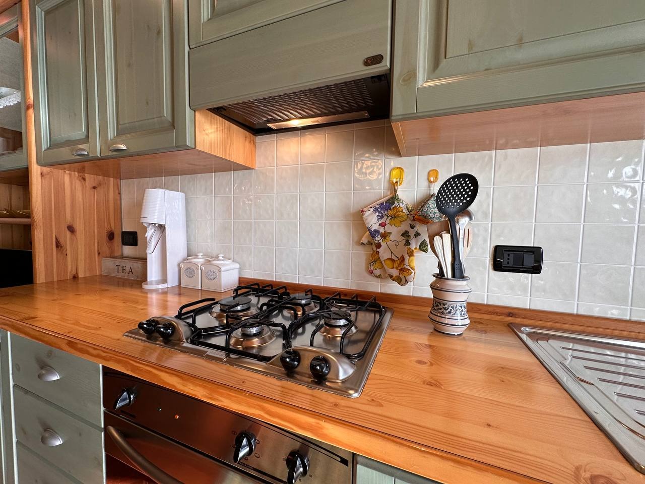 L’appartamento è dotato di riscaldamento a pavimento alimentato a GPL e serramenti con vetrocamera.