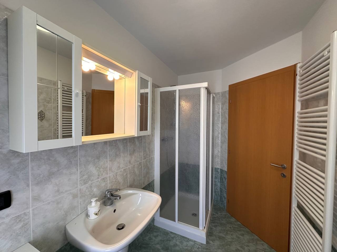 La zona giorno è organizzata in un ampio open space con cucina a vista e accesso diretto al terrazzo abitabile esposto a sud con una vista aperta. La zona notte comprende una camera matrimoniale con armadio, una cameretta doppia ed un bagno finestrato con box doccia e balconcino.
