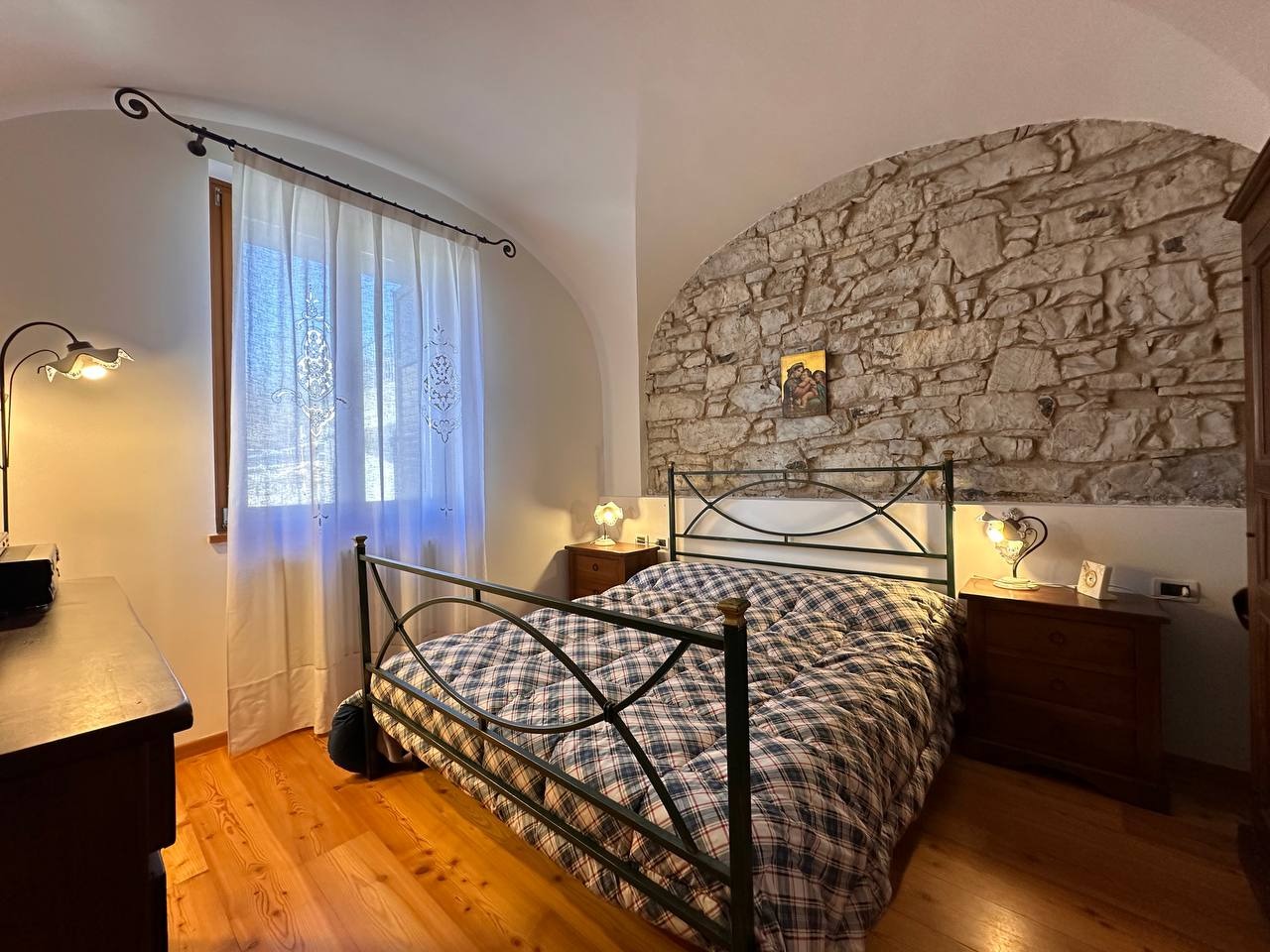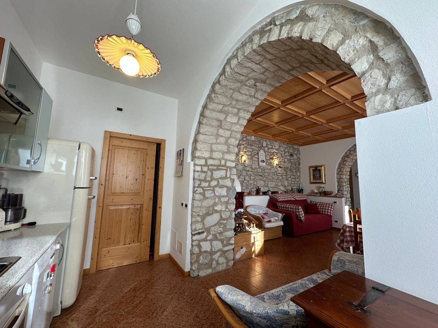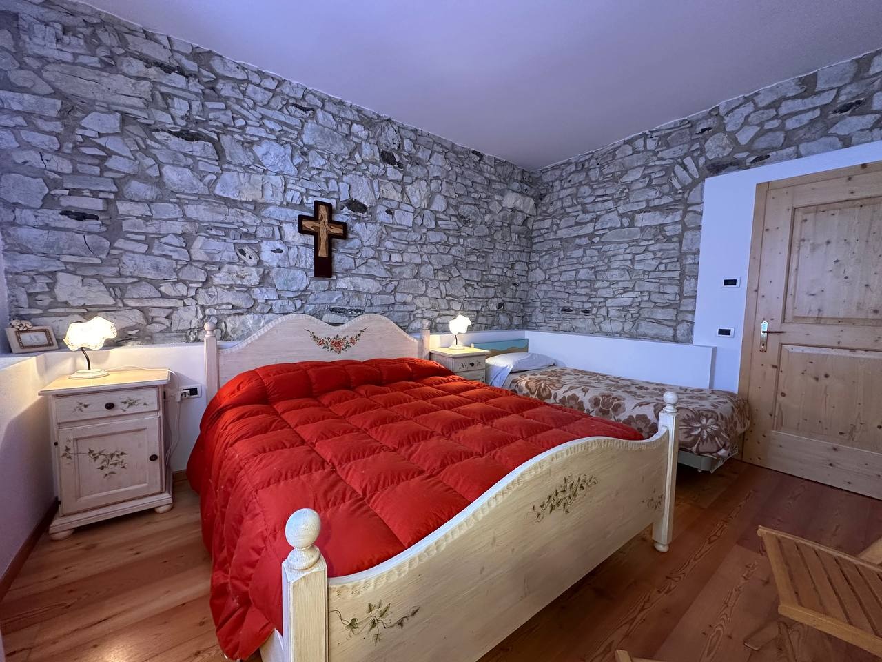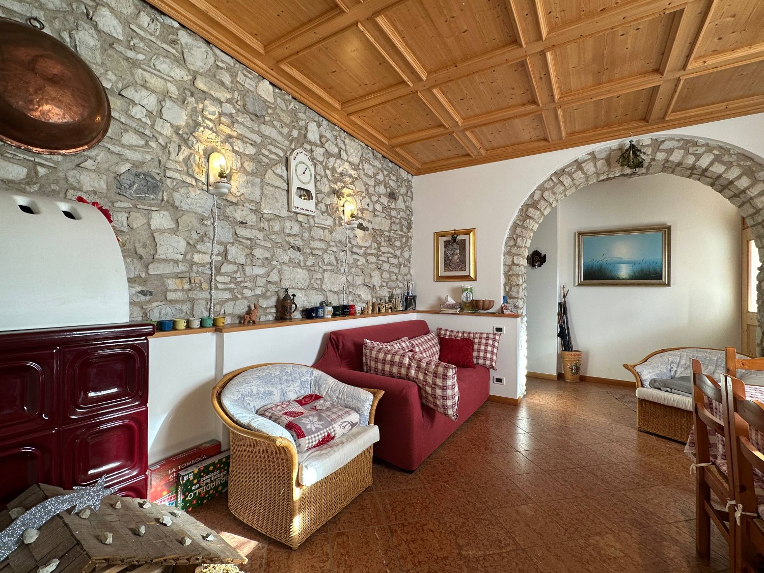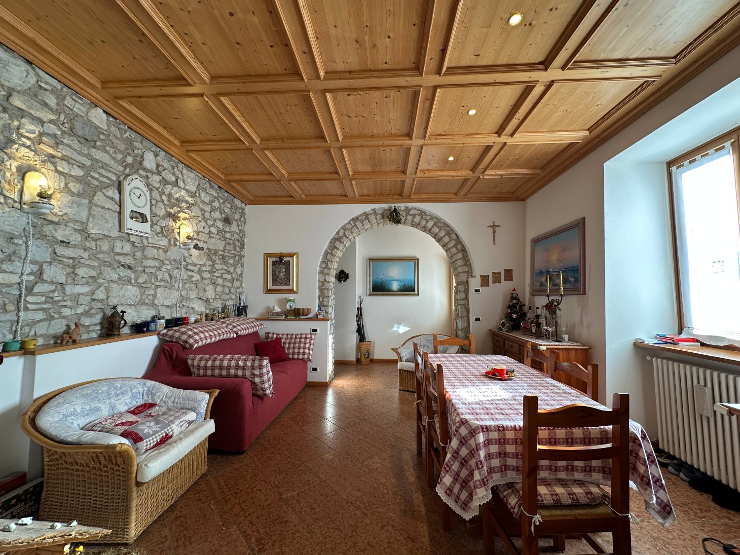 A Lavarone, in frazione Longhi, proponiamo in vendita un esclusivo appartamento al piano terra con ingresso indipendente. L'immobile, che si sviluppa su un unico piano, si compone da un ampia zona living, molto luminosa perchè esposta a sud, comoda cucina dotata di tutti gli elettrodomestici, pratico ripostiglio ed accesso diretto ad un box auto di 30 mq. La zona notte si compone da due spaziose camere matrimoniali, entrambe caratterizzate da degli archi antichi. Troviamo infine un ampio bagno finestrato dotato di box doccia. Le pareti in sasso, la boiserie, il controsoffitto a cassonetti e il pavimento in marmo rosso rendono questa soluzione unica nel suo genere.