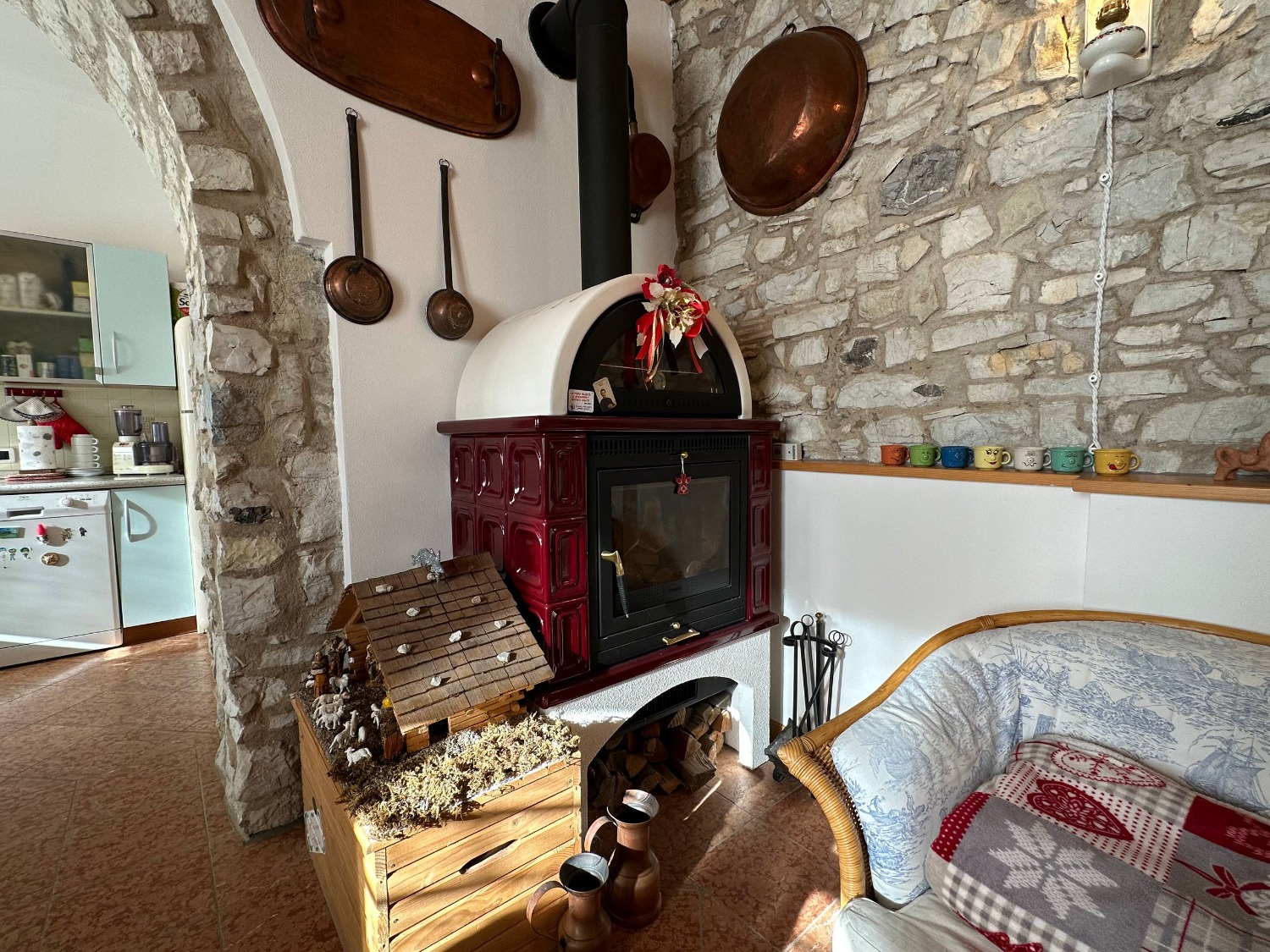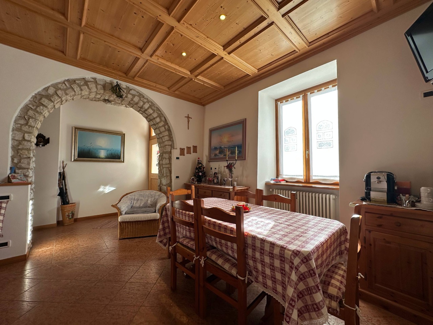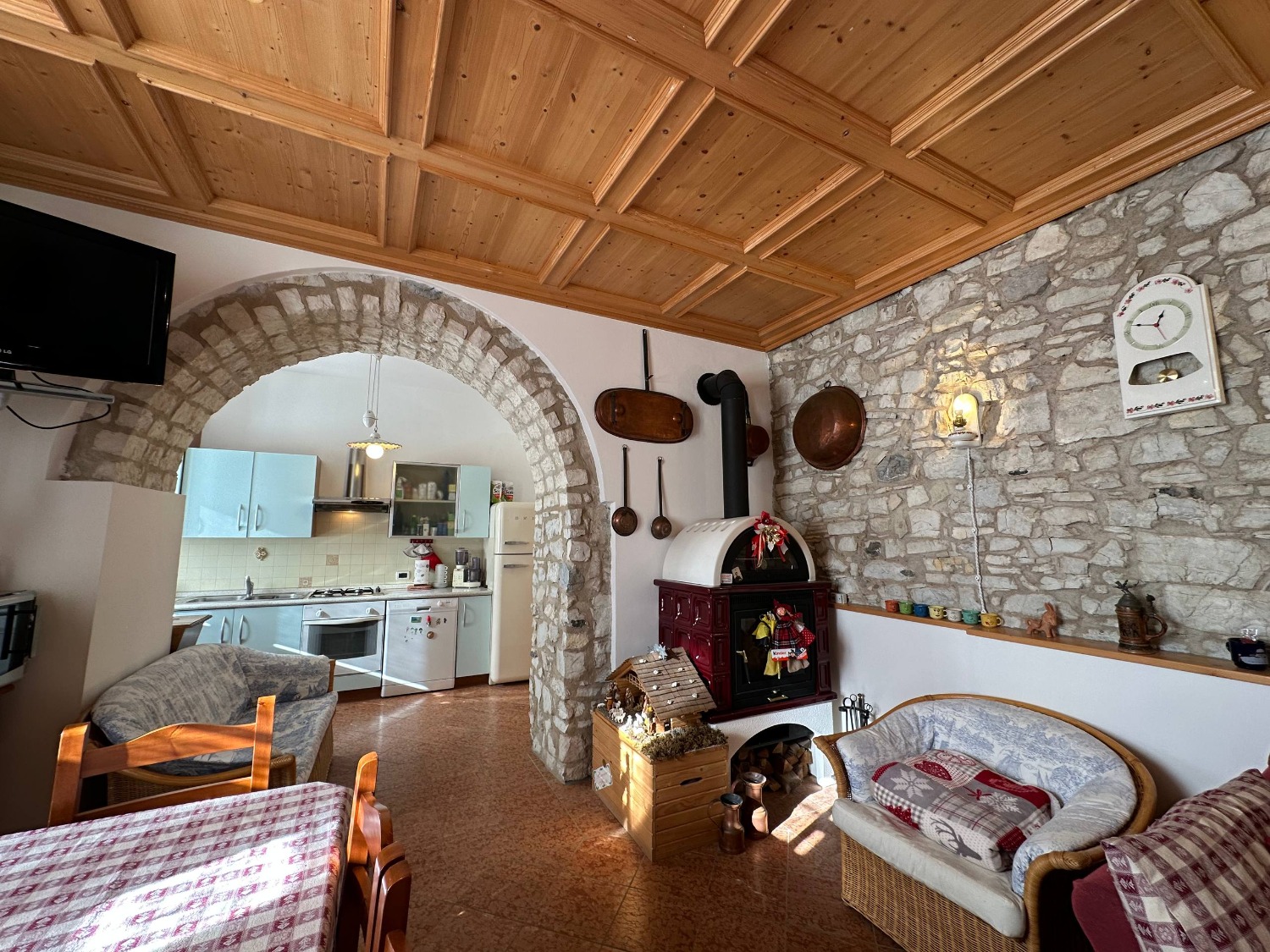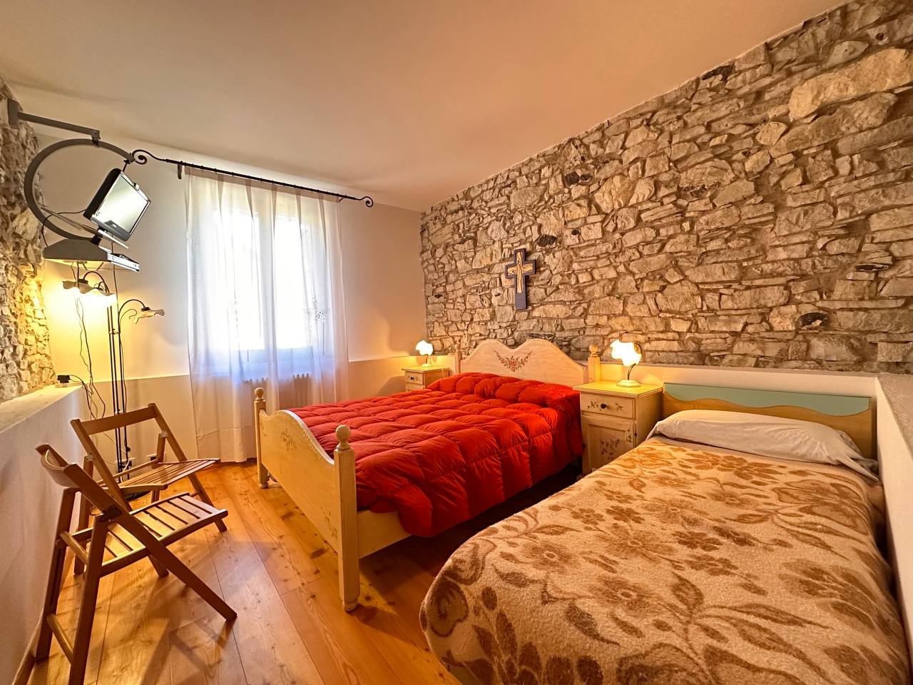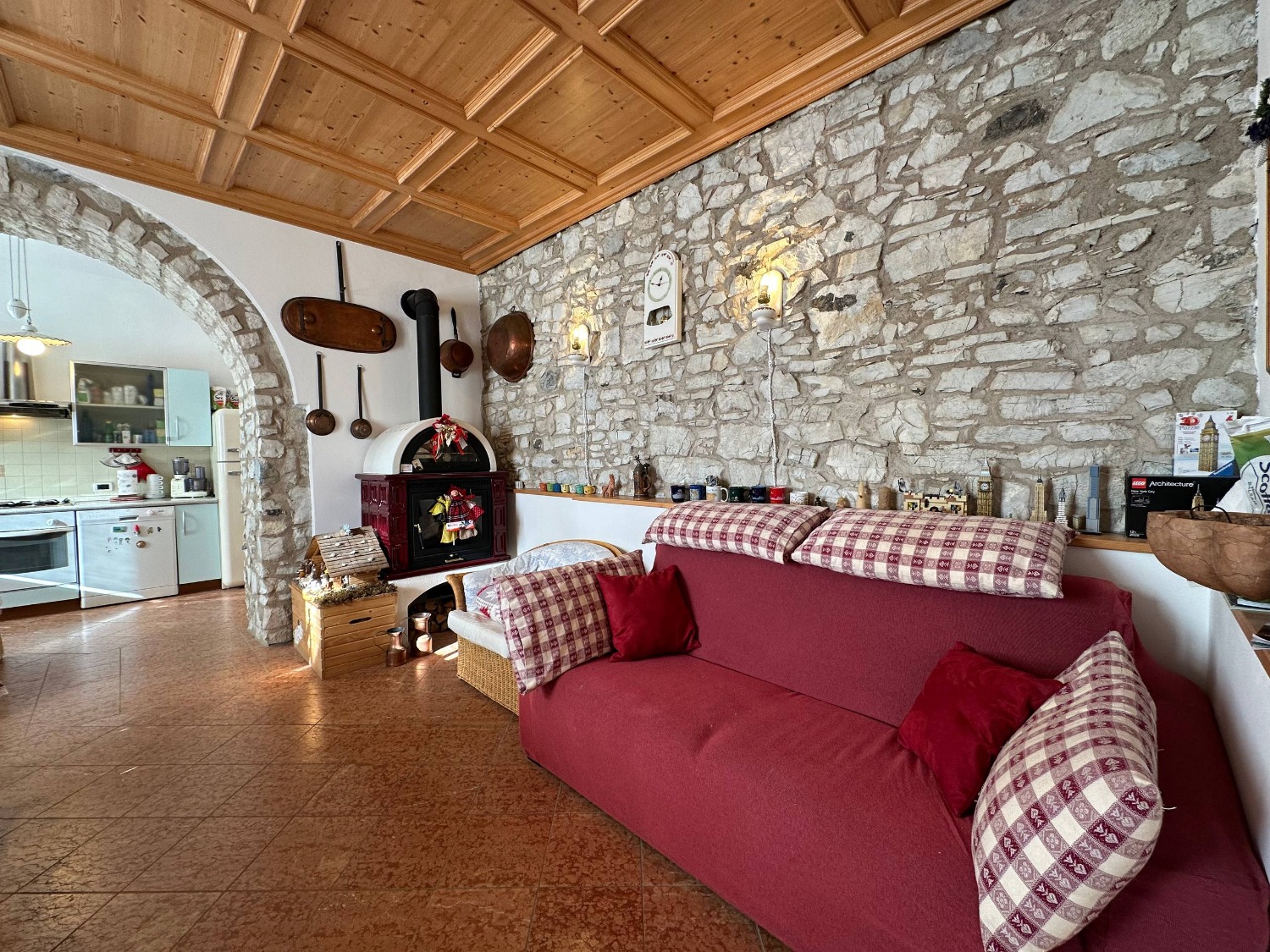 A Lavarone, in frazione Longhi, proponiamo in vendita un esclusivo appartamento al piano terra con ingresso indipendente. L'immobile, che si sviluppa su un unico piano, si compone da un ampia zona living, molto luminosa perchè esposta a sud, comoda cucina dotata di tutti gli elettrodomestici, pratico ripostiglio ed accesso diretto ad un box auto di 30 mq. La zona notte si compone da due spaziose camere matrimoniali, entrambe caratterizzate da degli archi antichi. Troviamo infine un ampio bagno finestrato dotato di box doccia. Le pareti in sasso, la boiserie, il controsoffitto a cassonetti e il pavimento in marmo rosso rendono questa soluzione unica nel suo genere.